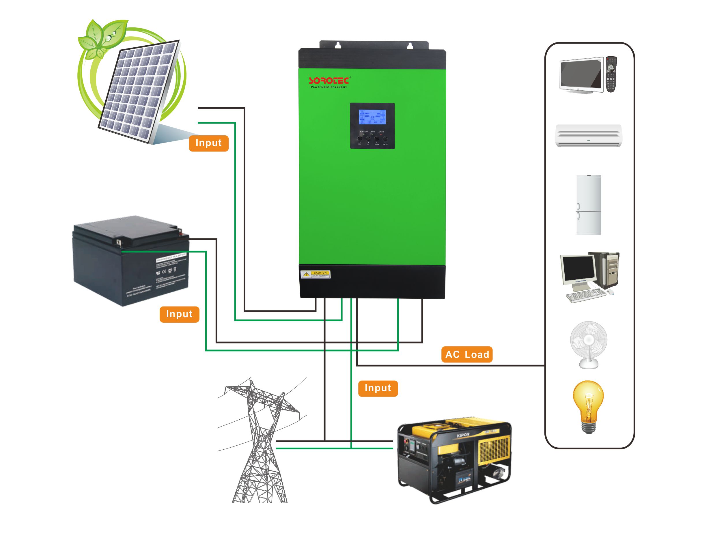 8. Configurable AC/Solar input priority via LCD setting